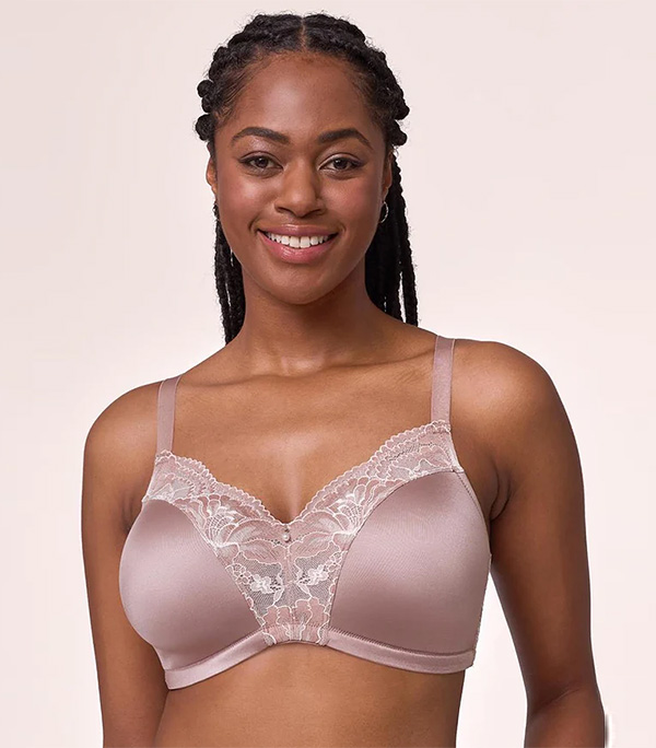 Fashion Wire-Free T-shirt Bra. Microfiber cups, two-tone lace wings, and a supportive U-back for comfort without compromise.